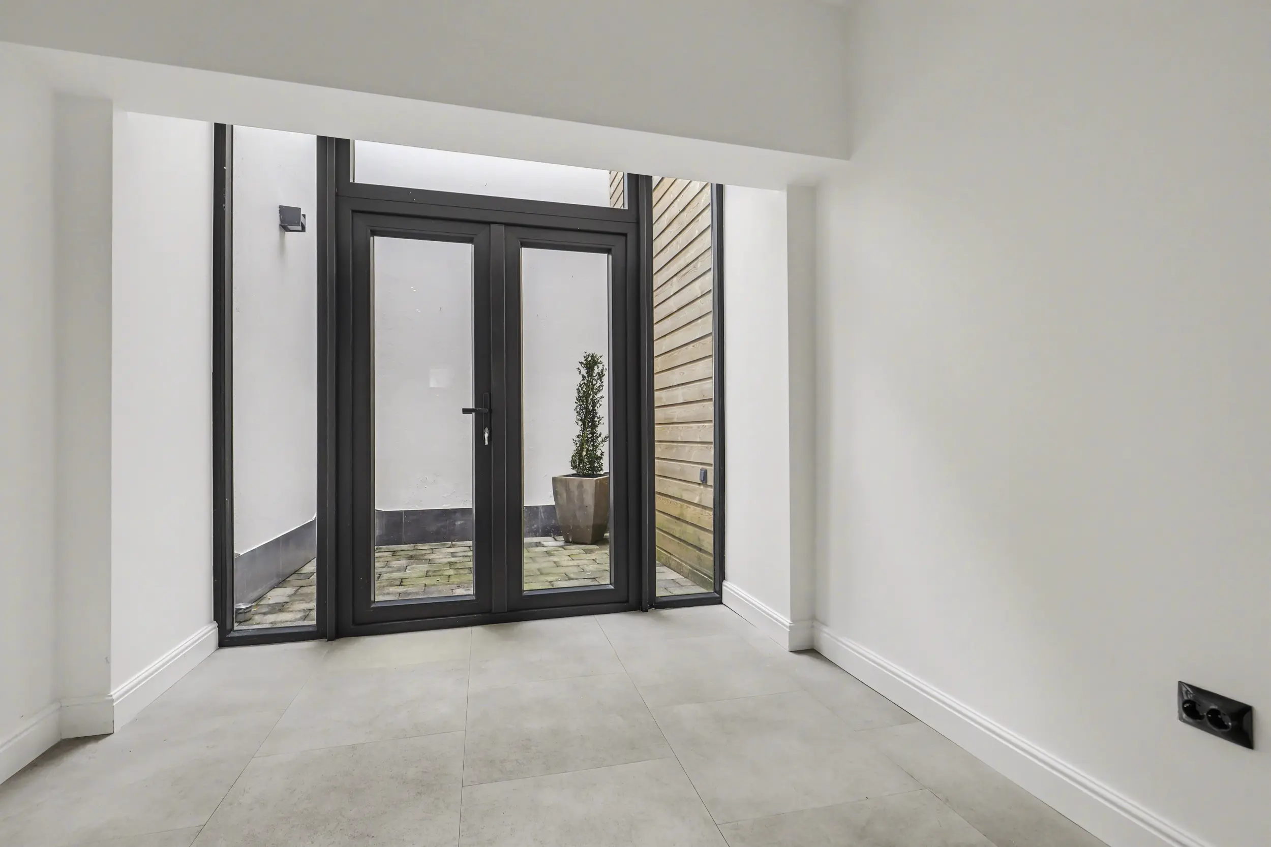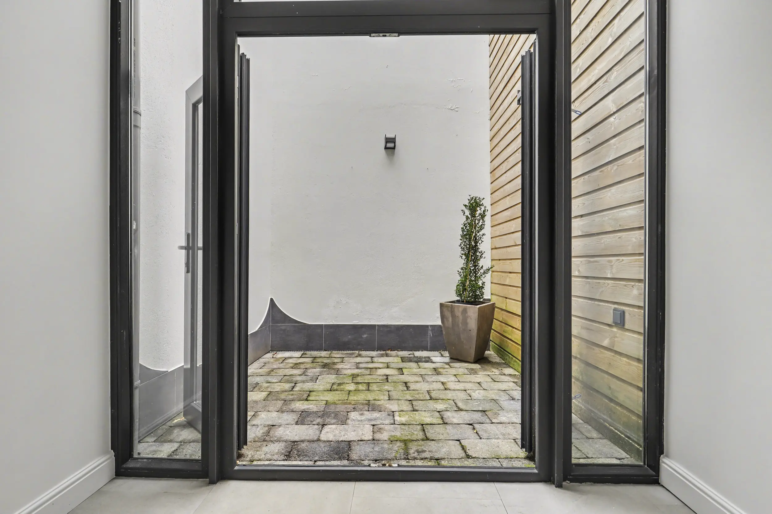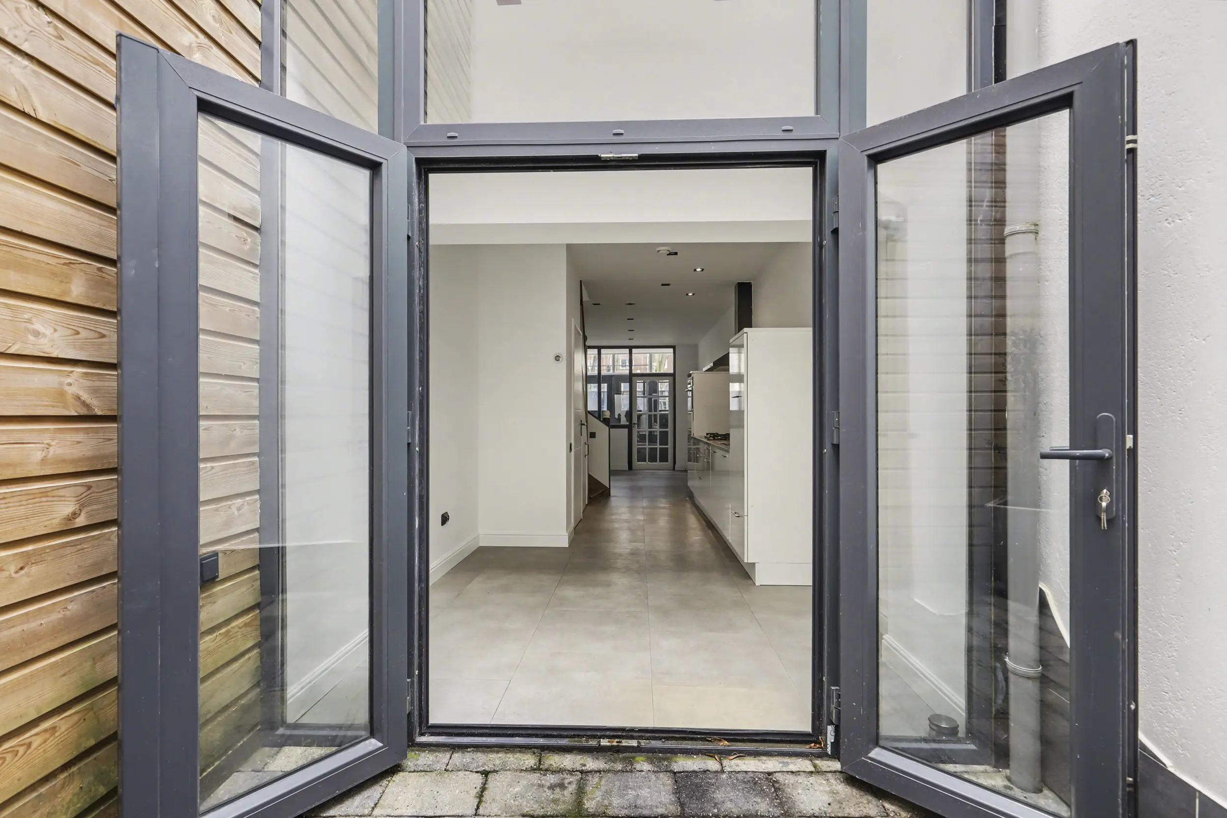 - De achterpui is voorzien van antraciet kunststof deuren en ramen met HR++ beglazing