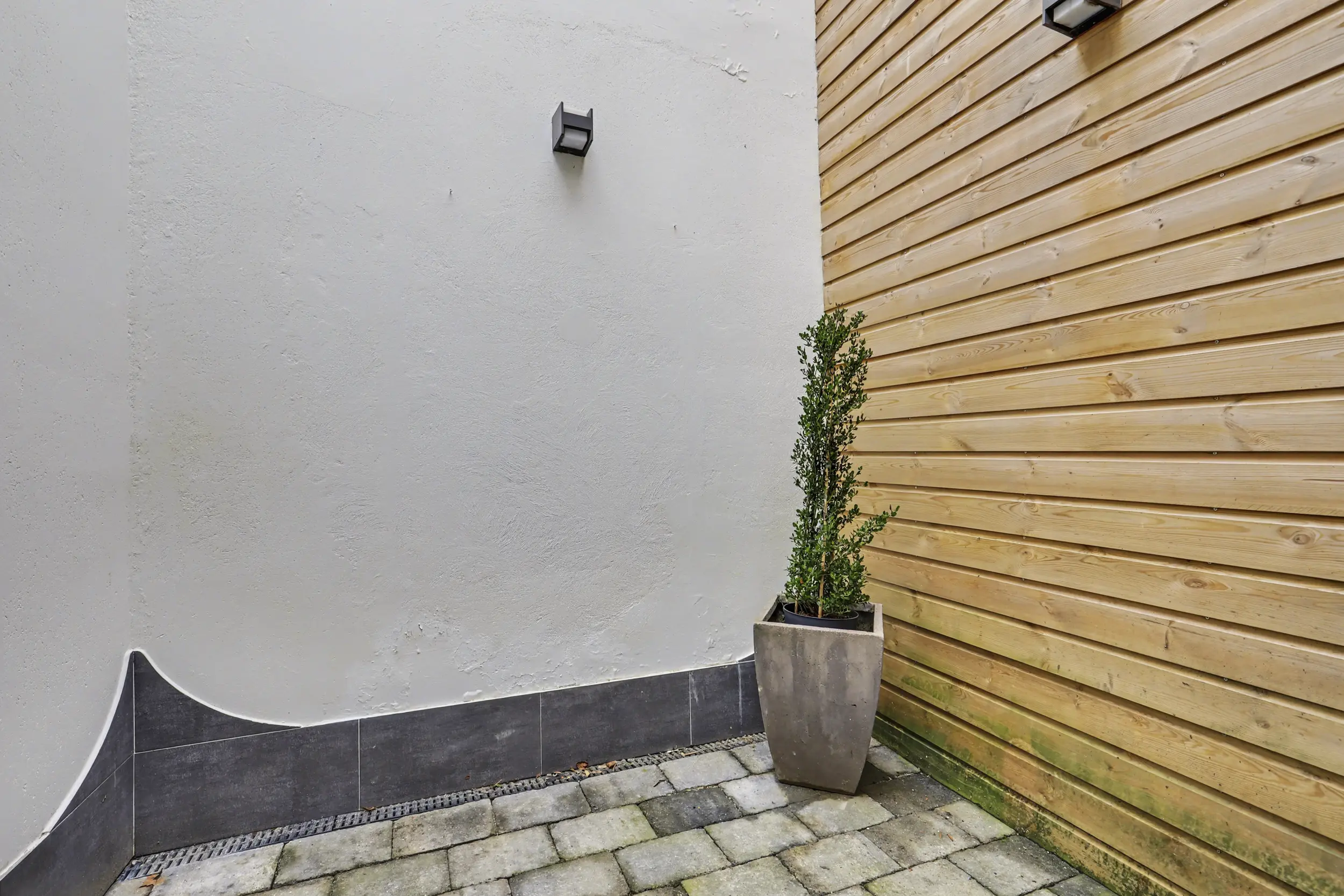 De patio is volledig betegeld en vormt een heerlijke, beschutte plek waar u na een drukke dag in alle rust kunt ontspannen.