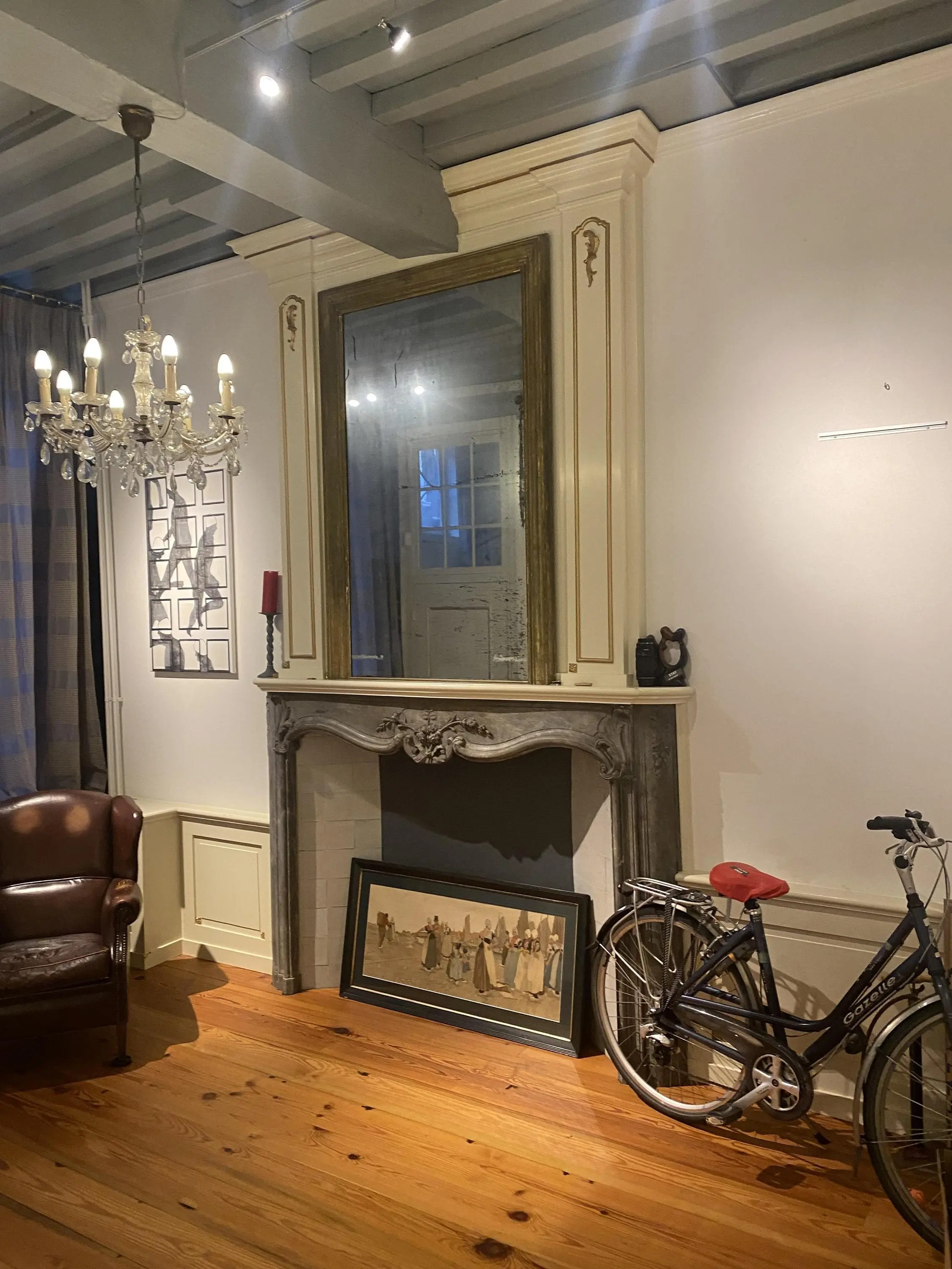 De 1e verdieping geeft toegang tot de woonkamer, een zogenoemde stijlkamer geheel in laat 18e-eeuwse Lodewijk XVI- stijl uitgevoerd waar iedere liefhebber zijn of haar hart een sprongetje bij maakt.