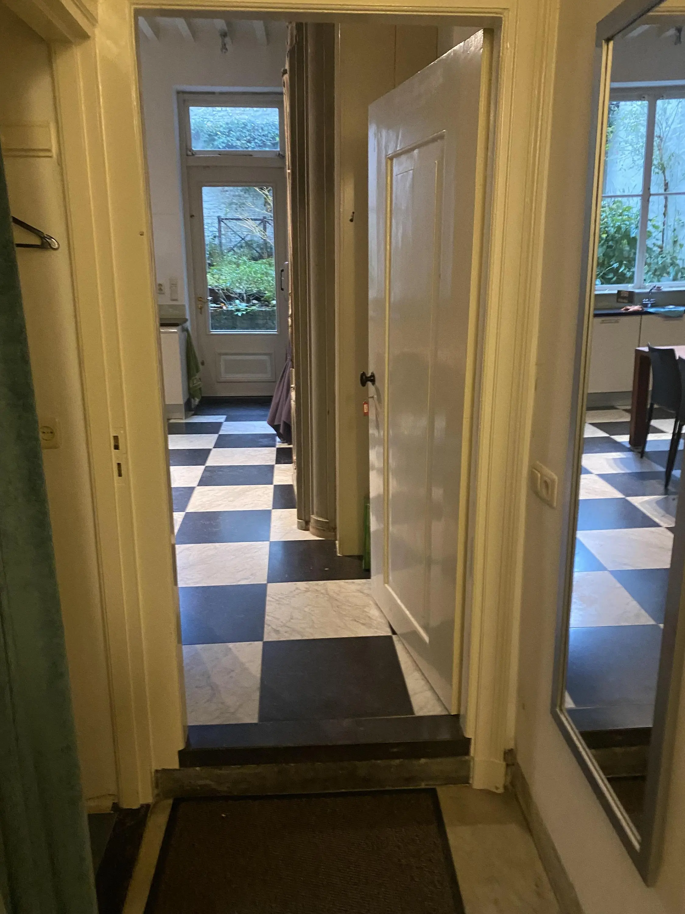 Het is een heerlijk pand met een ruime zitkamer aan de straatzijde die uitstekend geschikt is als werkkamer mede omdat er een fraaie tussengang met een 19e-eeuws gebrandschilderde glazen deur aangesloten ligt.