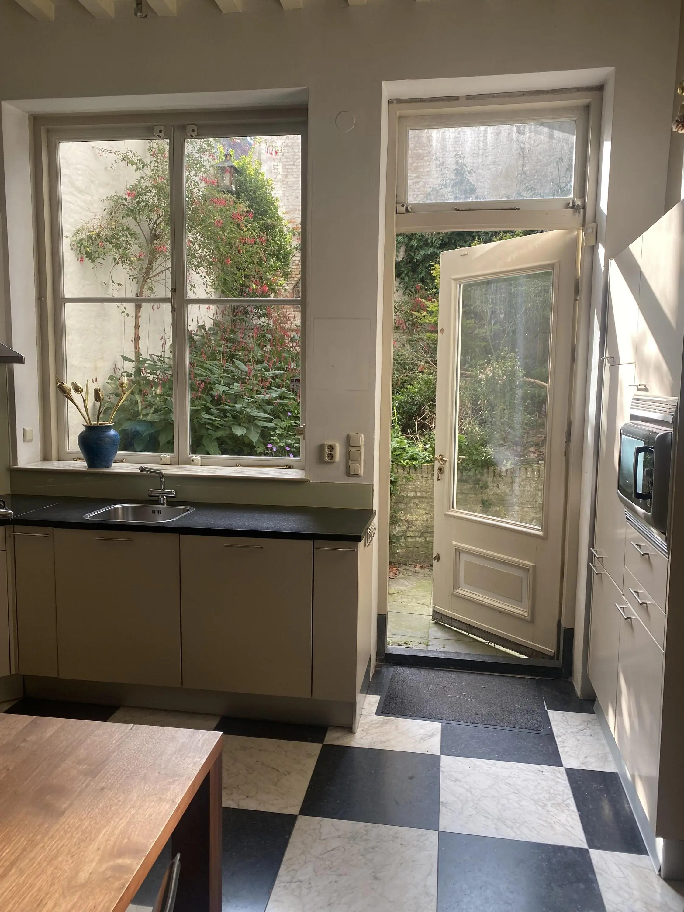 De keuken is van alle gemakken voorzien en zal met de hoge plafonds en fraaie lichtinval zeker bijdragen aan gezellige diners met vrienden.