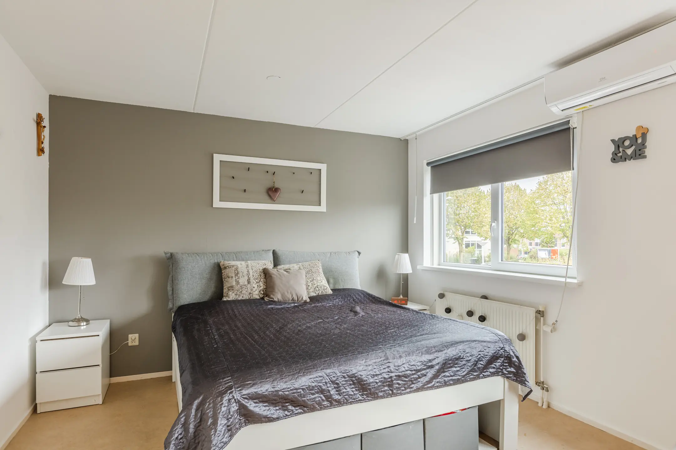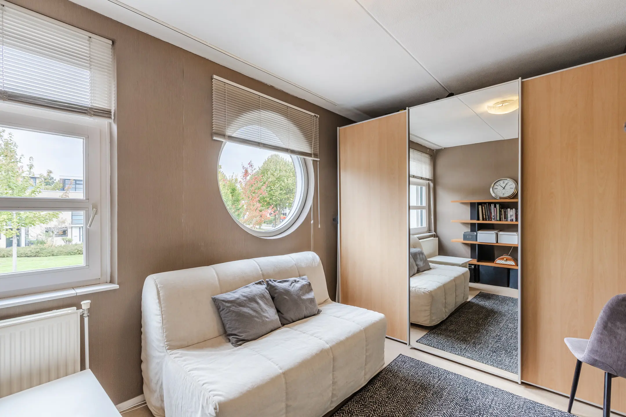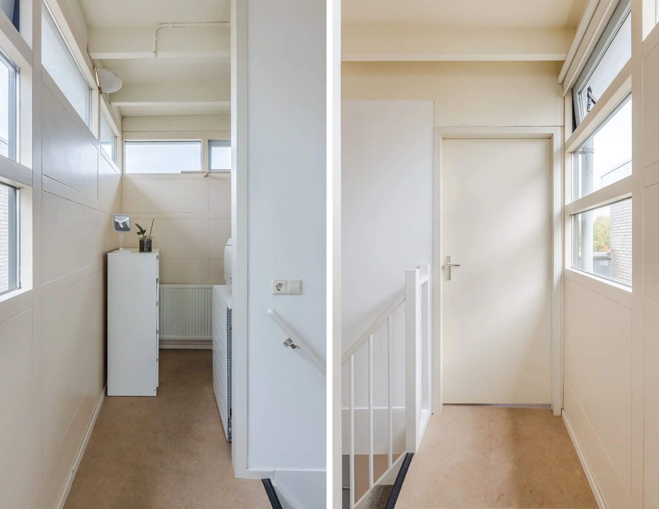 De tweede verdieping biedt nog een extra verrassing: dankzij de dakopbouw is hier een ruime derde slaapkamer ontstaan met volop licht en mogelijkheden. Daarnaast vind je hier de was-/stookruimte met de Intergas HRE 2024 (huur EUR 40,- p.m.).