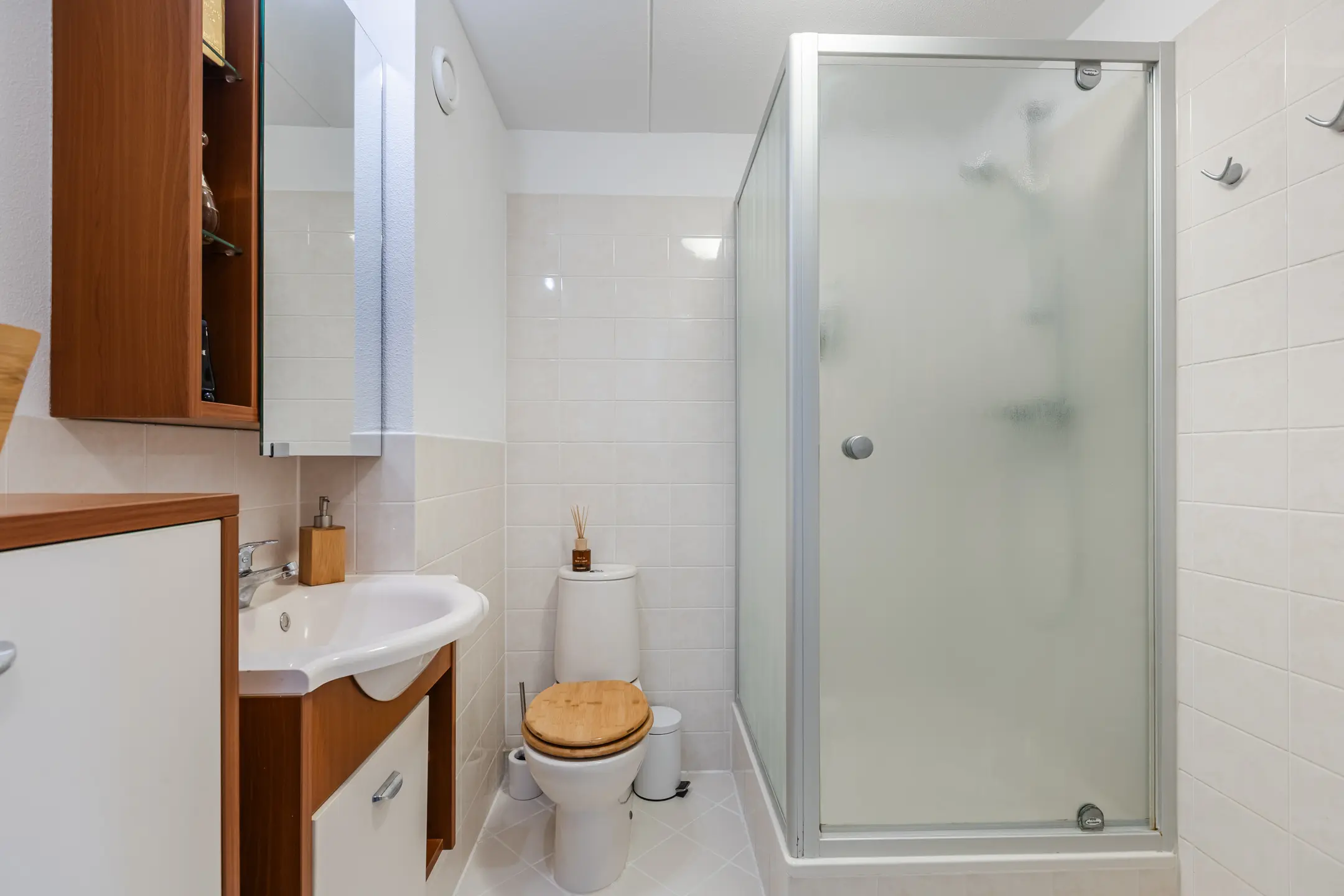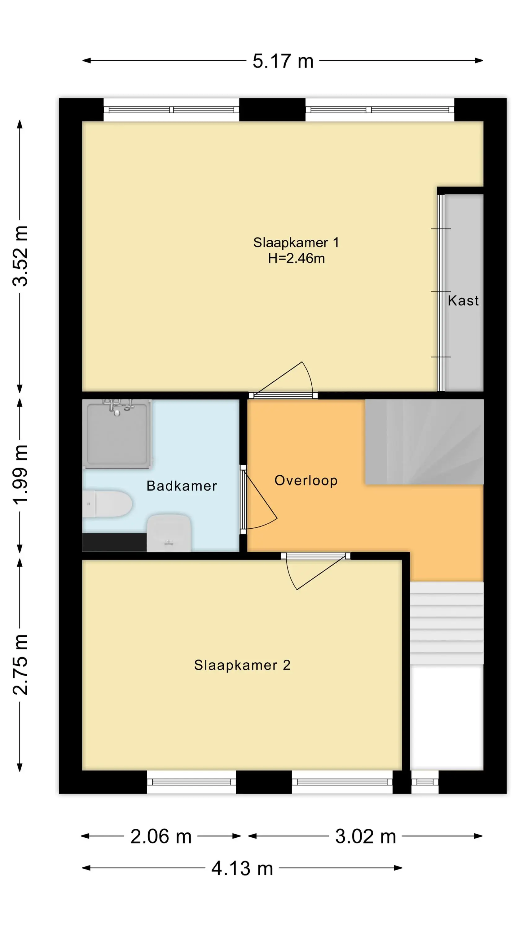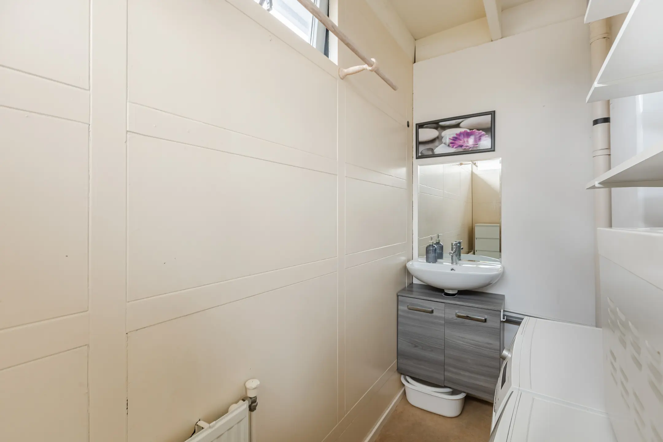 Op de eerste verdieping bevinden zich twee royale slaapkamers en een verzorgde badkamer. De slaapkamer aan de achterzijde – oorspronkelijk twee kamers – is bijzonder ruim en beschikt over een ingebouwde kast. De slaapkamer aan de voorzijde is voorzien van een elektrisch rolluik, ideaal voor een goede nachtrust. De badkamer is netjes afgewerkt en beschikt over een douche, een tweede toilet, een modern wastafelmeubel en een handdoekenradiator.