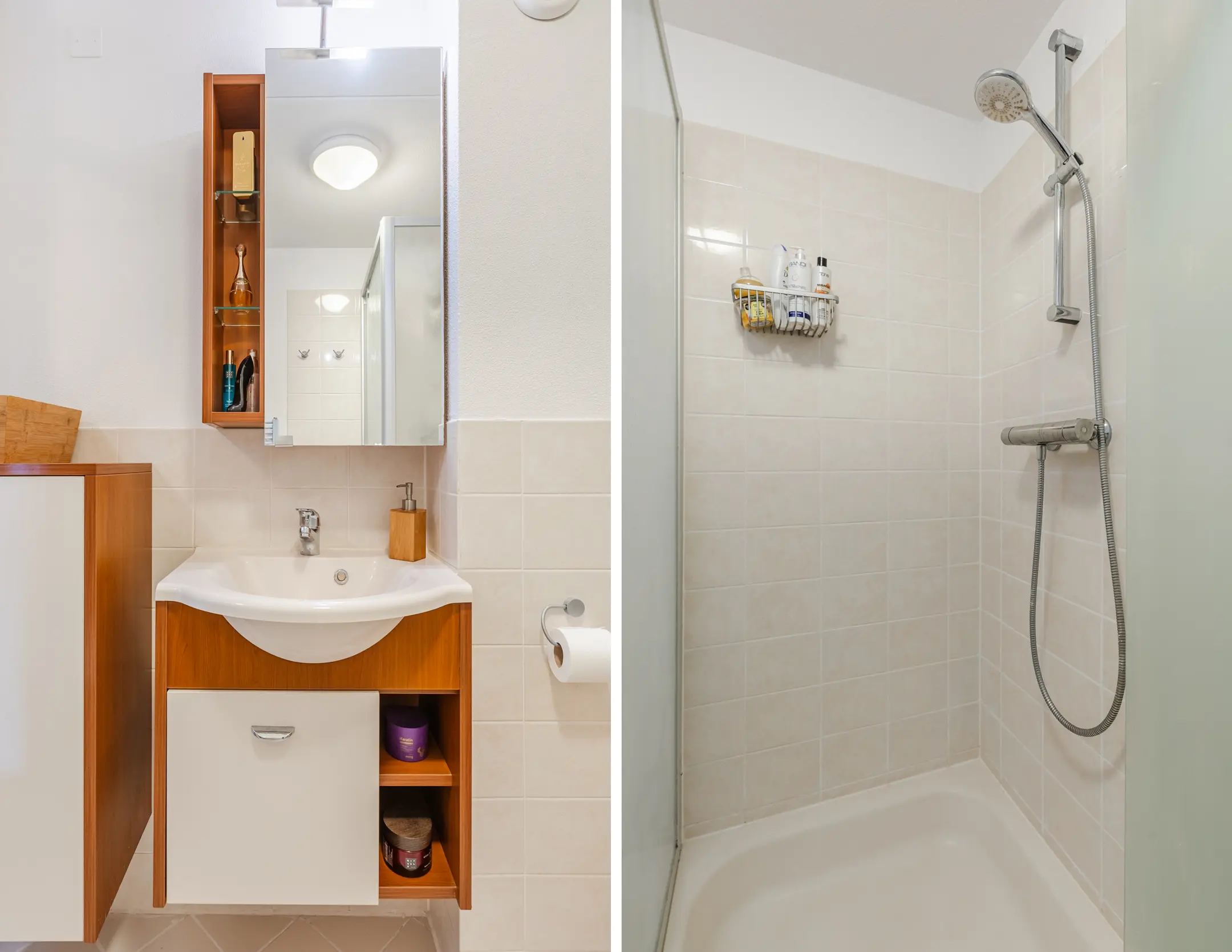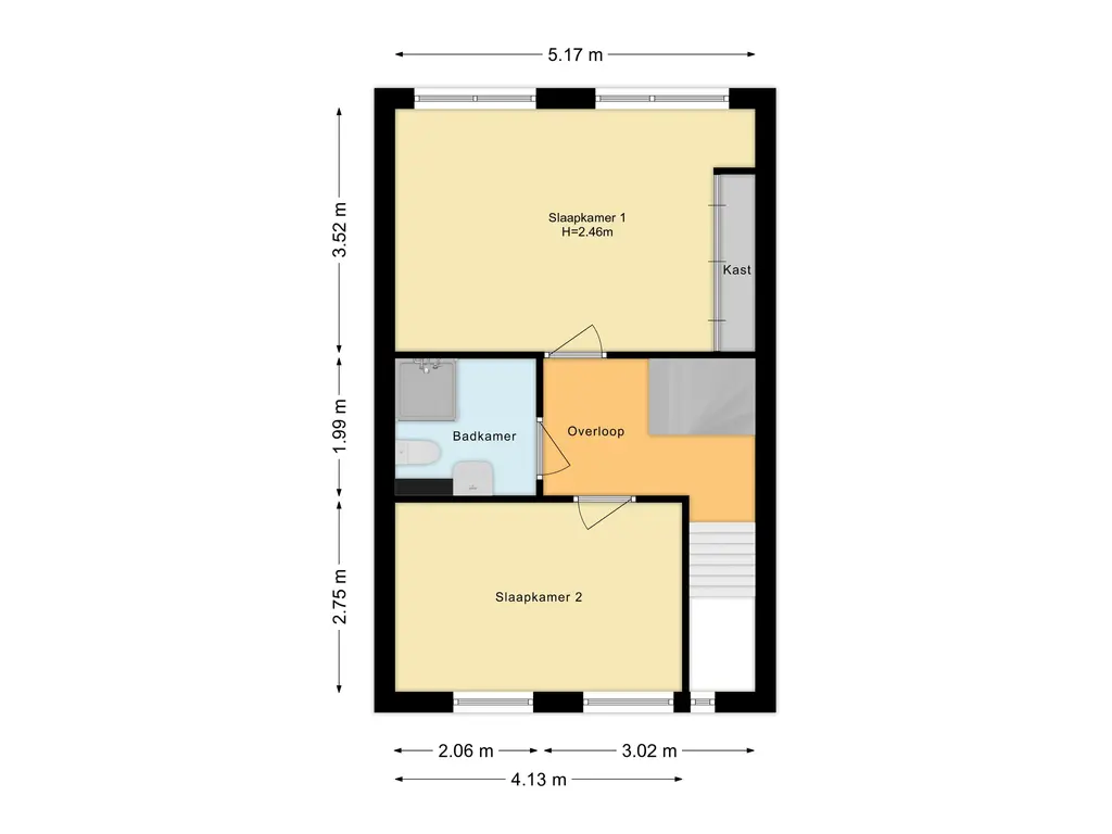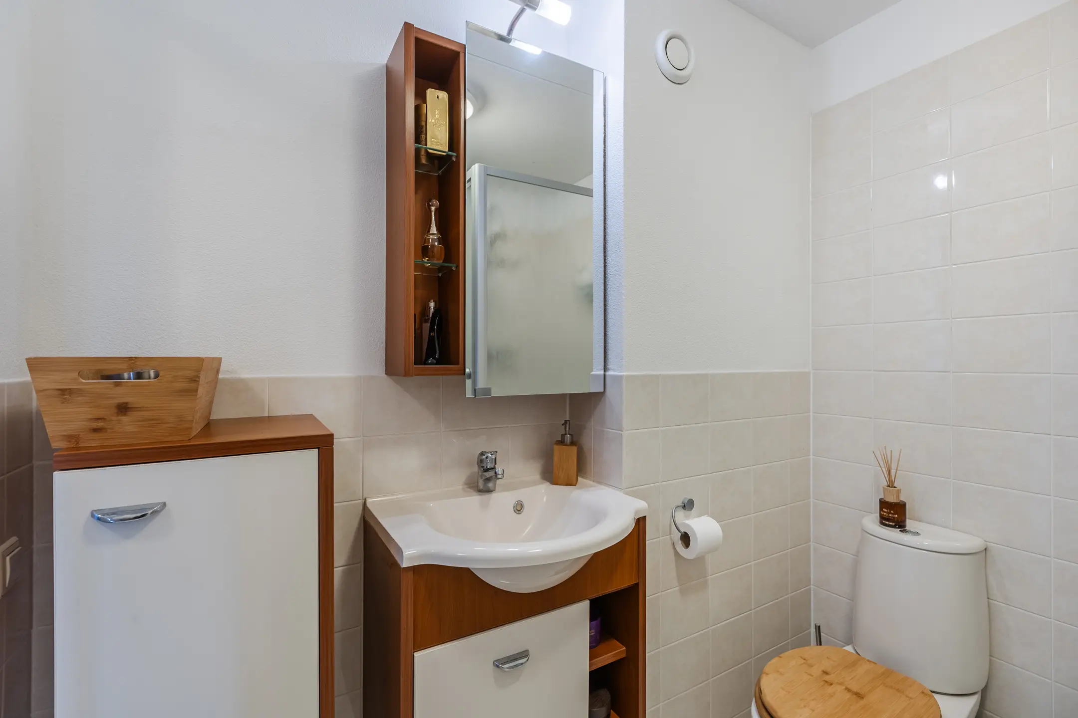 Op de eerste verdieping bevinden zich twee royale slaapkamers en een verzorgde badkamer. De slaapkamer aan de achterzijde – oorspronkelijk twee kamers – is bijzonder ruim en beschikt over een ingebouwde kast. De slaapkamer aan de voorzijde is voorzien van een elektrisch rolluik, ideaal voor een goede nachtrust. De badkamer is netjes afgewerkt en beschikt over een douche, een tweede toilet, een modern wastafelmeubel en een handdoekenradiator.
