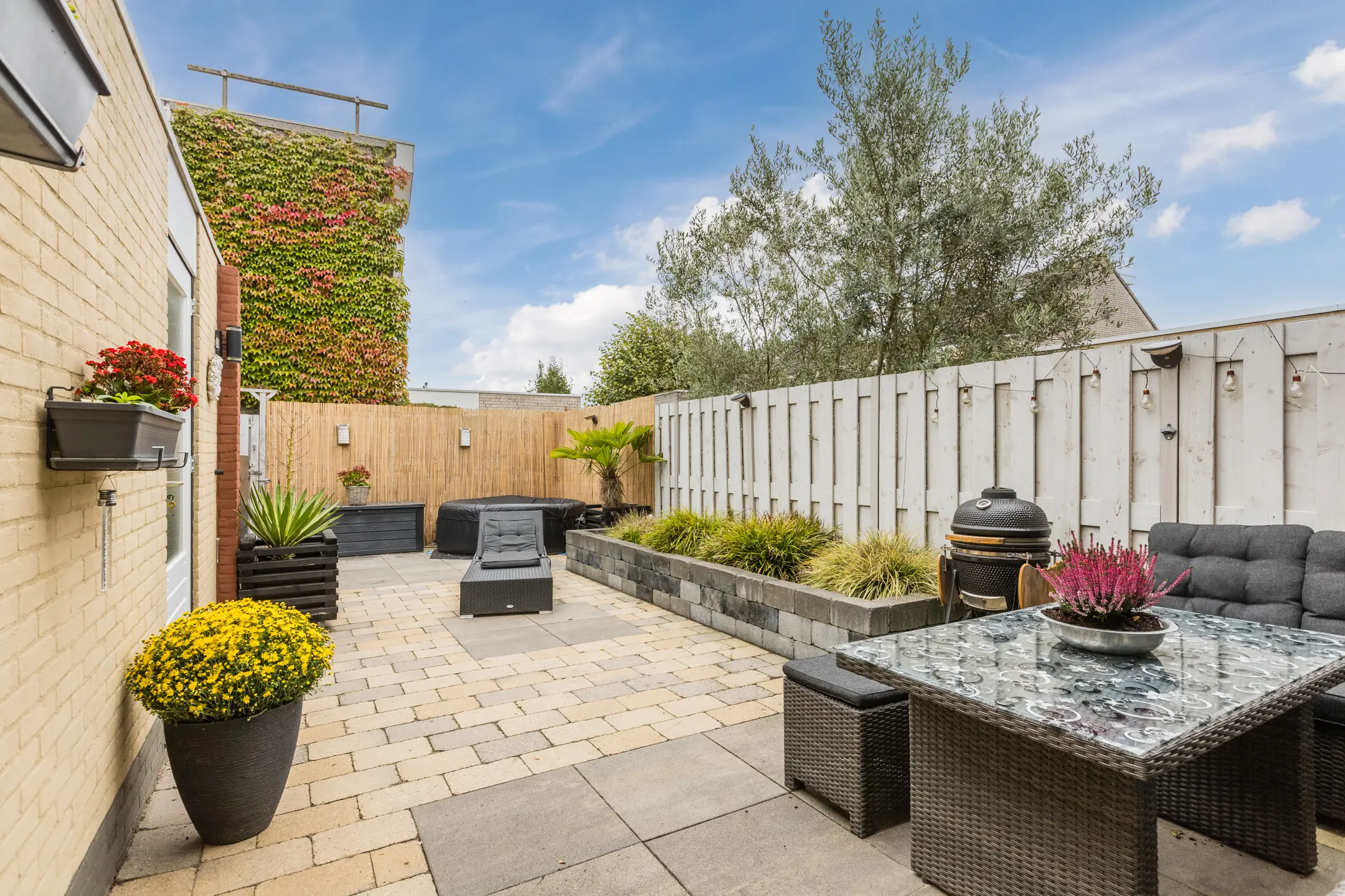 De woning is volledig geïsoleerd en voorzien van dubbele beglazing, wat zorgt voor een comfortabel binnenklimaat en lagere energiekosten. Zowel de voor- als achterzijde zijn uitgerust met elektrisch bedienbare rolluiken en aan de achterzijde bevindt zich een zonnescherm. De achtertuin is verzorgd, onderhoudsvriendelijk en via een achterom bereikbaar – een heerlijke plek om in alle rust van buiten te genieten.