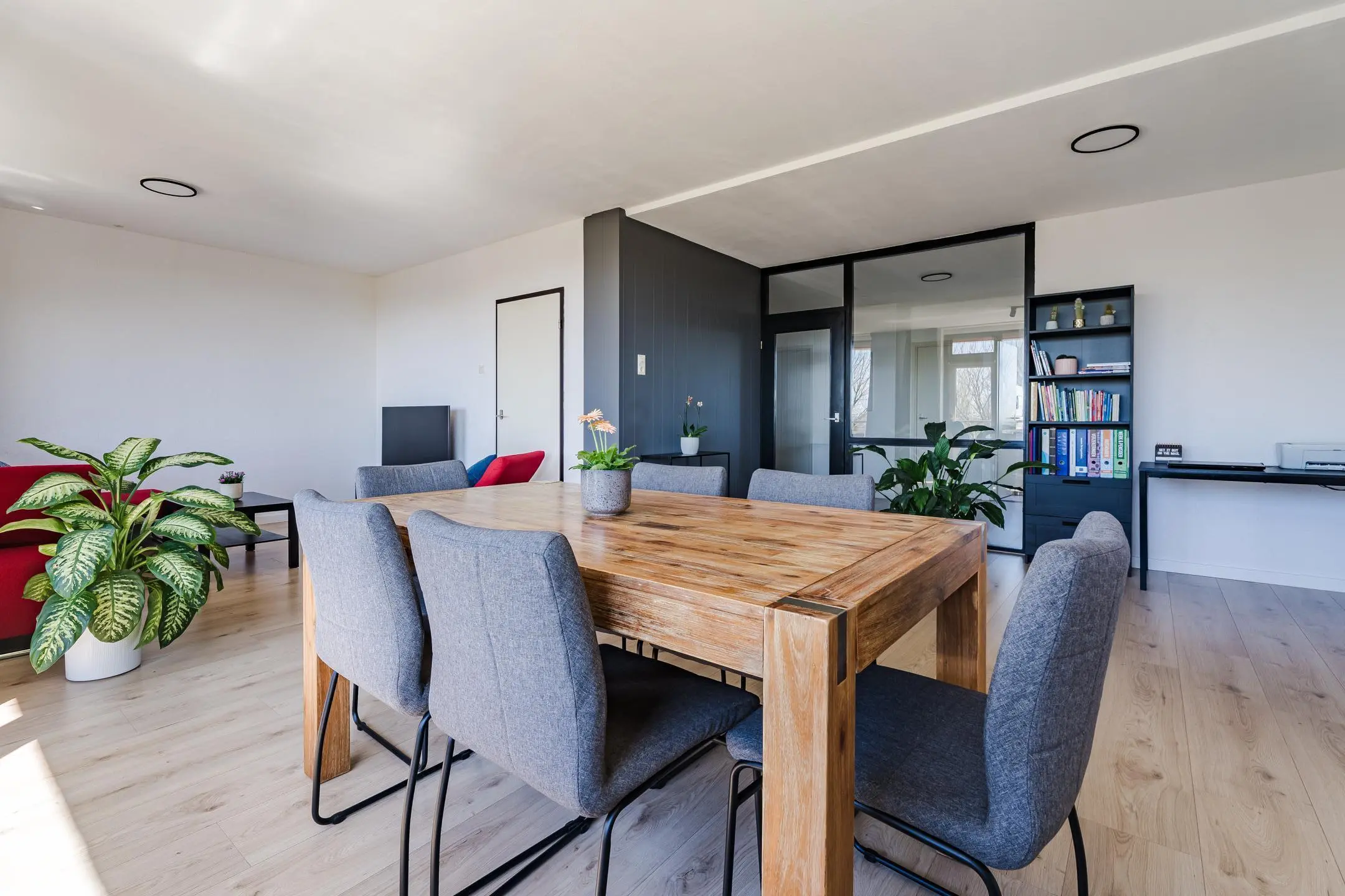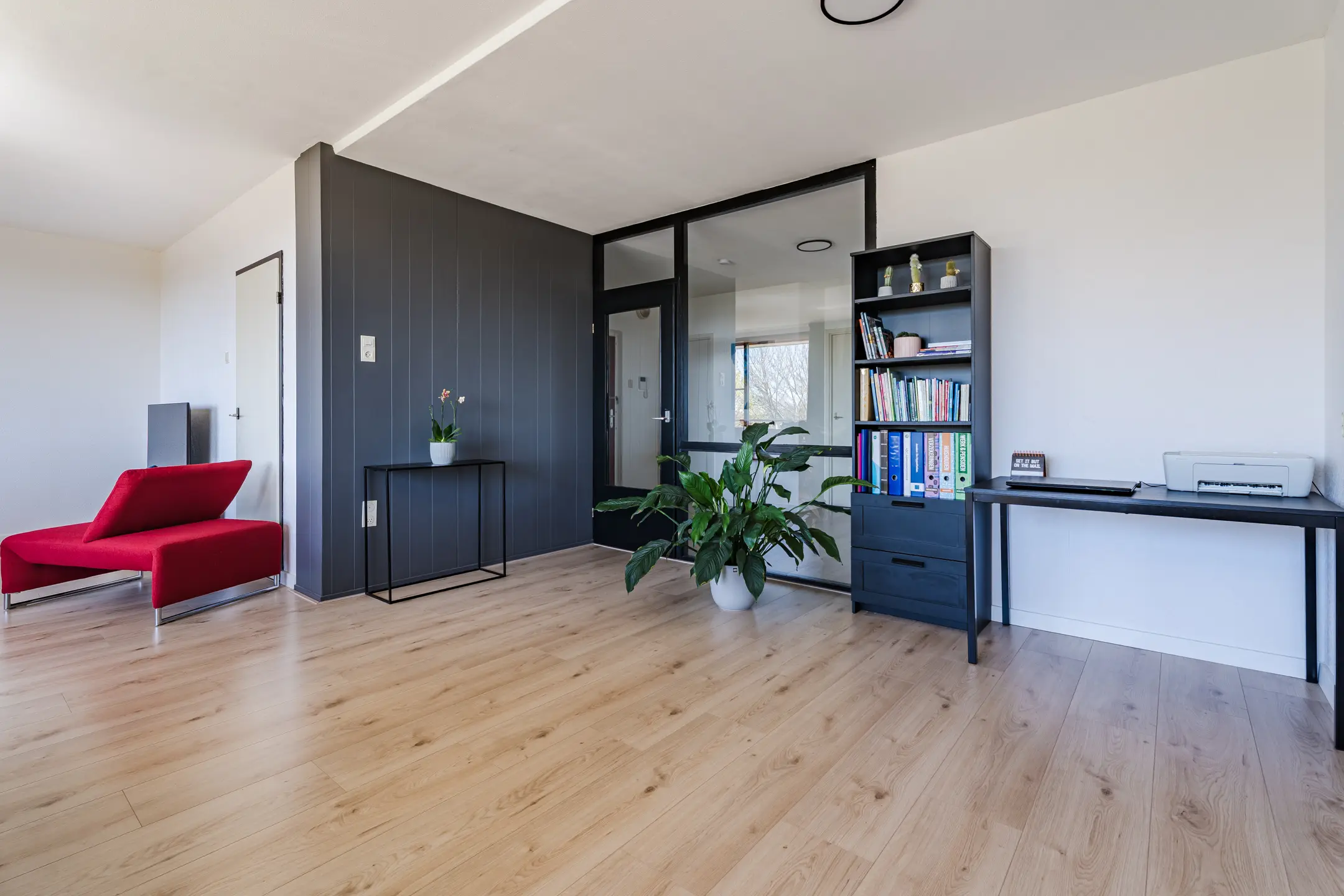 Zodra je binnenkomt, valt direct de ruimte op. De ruime woonkamer strekt zich uit over de volledige breedte van de woning en biedt meer dan genoeg plek voor een gezellige zithoek én een apart eetgedeelte. Oorspronkelijk waren er drie slaapkamers, maar door het samenvoegen van één kamer met de woonkamer is er een fijne, open leefruimte ontstaan – perfect om vrienden te ontvangen of gewoon lekker te ontspannen.